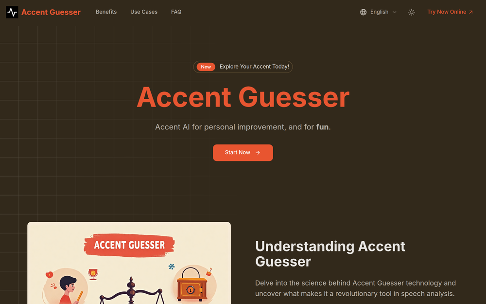 Accent Guesser is a revolutionary AI-powered tool designed to analyze and identify your unique accent. Whether you're a language enthusiast, a curious individual, or looking to understand your linguistic roots, this platform offers fascinating insights into your speech patterns. It leverages cutting-edge deep learning technology to provide a quick, accurate, and engaging accent analysis experience.