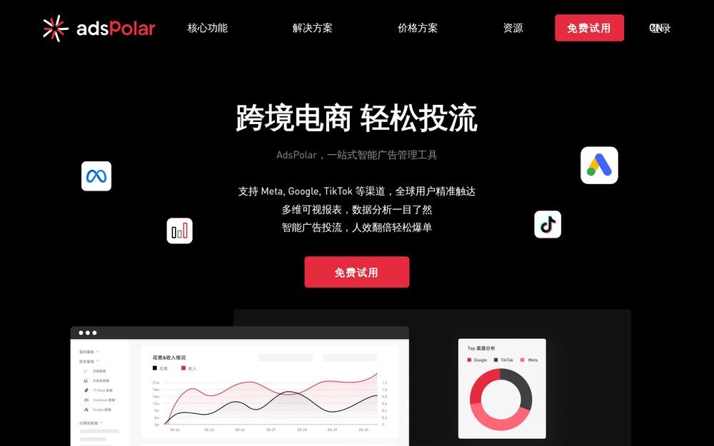 AdsPolar is a comprehensive, AI-powered advertising management tool designed for cross-border e-commerce sellers. It streamlines ad operations across major platforms like Meta, Google, and TikTok, enabling businesses to reach global audiences with precision and efficiency. The platform aims to significantly boost advertising ROI and operational efficiency, making it easier for sellers to achieve substantial sales growth.
