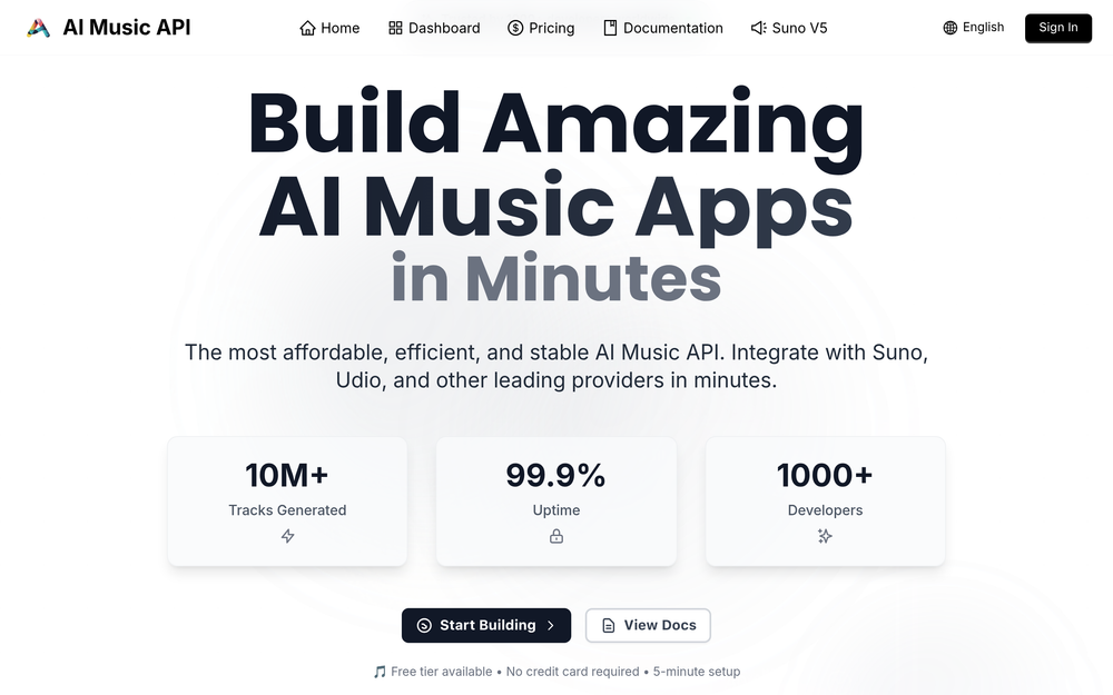 AI Music API for developers. Integrate Suno, Udio & more for affordable, efficient music generation. Free tier available.