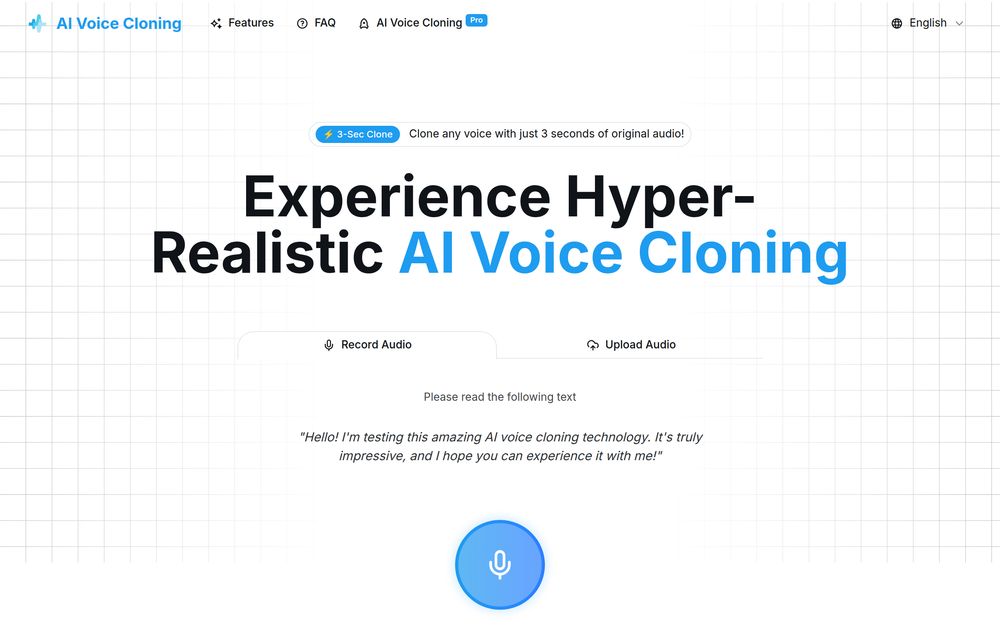 Realistic AI voice generator for cloning voices in 3 seconds. Supports multiple languages. Free and Pro versions available.
