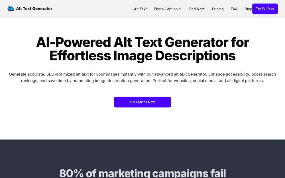 Alt Text Generator is a cutting-edge AI tool designed to instantly generate accurate, SEO-optimized alt text for your images. It solves the problem of images being unsearchable by search engines and inaccessible to visually impaired users, thereby helping businesses connect with a wider audience and improve their online visibility. The platform stands out with its intuitive interface and powerful AI capabilities that streamline the process of image description generation, saving valuable time for content creators, marketers, and website owners.