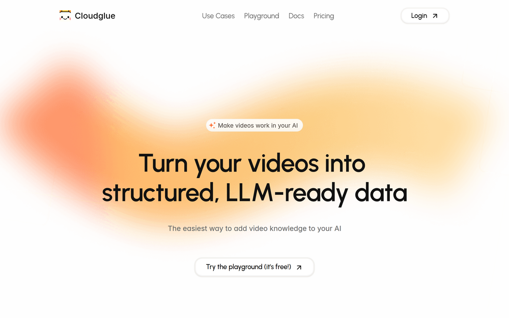 Cloudglue transforms videos into structured data for AI, enabling RAG, analytics, and conversational interfaces.