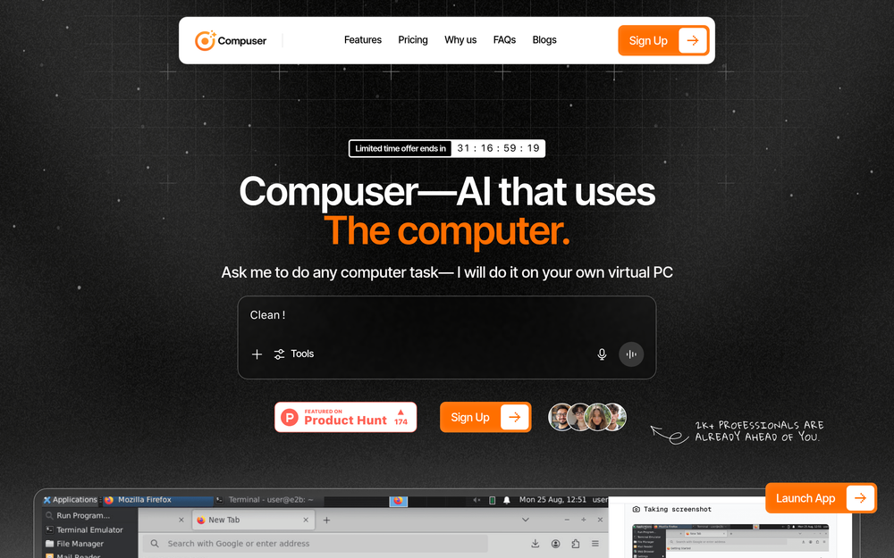 Compuser.ai: AI that uses your computer to automate tasks, browse, code, and analyze data securely.