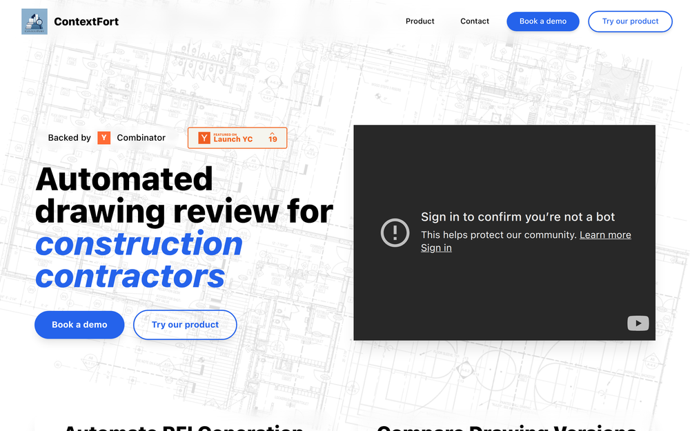 ContextFort is an AI copilot for construction drawing review. It empowers contractors to automate tedious and error-prone tasks associated with examining complex drawing sets. The platform analyzes PDF drawings and spec sheets to detect a wide range of issues, from missing dimensions and overlay mismatches to subtle changes between different versions of drawings.