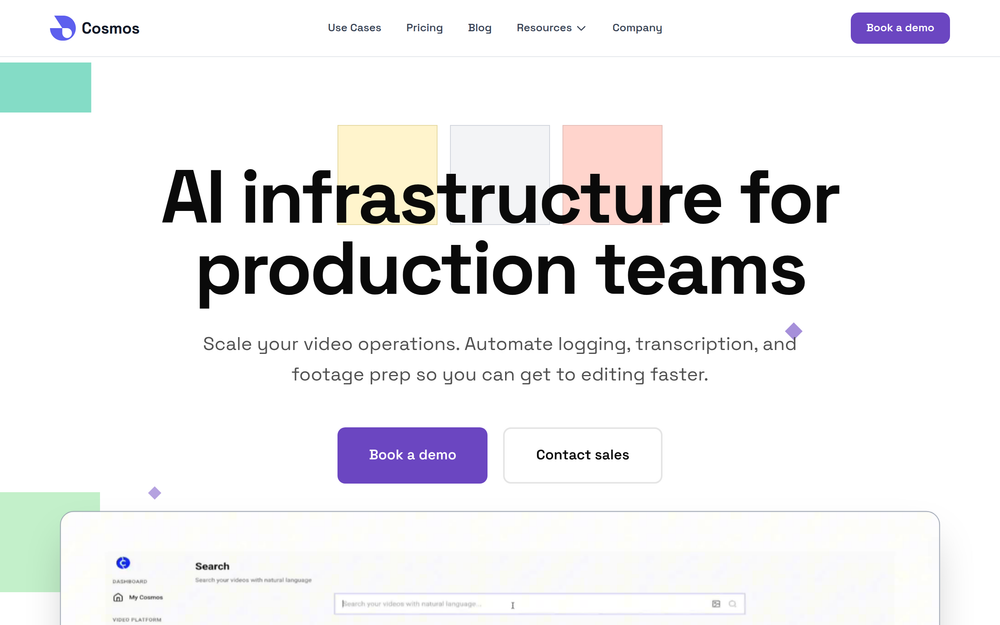 Cosmos provides AI-driven automation for video production logistics. It processes raw footage to generate accurate transcripts with speaker identification and timestamps, analyzes visual content for intelligent tagging, and assists in creating rough cuts. This transforms vast amounts of raw footage into a , making it easier than ever to find specific clips and repurpose existing content.