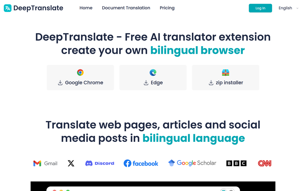 The extension transforms your browsing experience by enabling a "bilingual browser" mode. This means you can view original content alongside its translation simultaneously, facilitating a deeper understanding of multilingual materials. Whether you're a student conducting research, a professional staying updated on international news, or simply exploring the web, DeepTranslate enhances comprehension and efficiency. The ease of installation and use, coupled with robust API support, positions DeepTranslate as a versatile solution for anyone navigating the complexities of a globalized digital world.