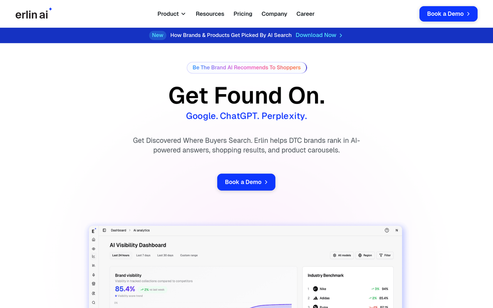 Erlin AI is a cutting-edge AI Visibility Engine meticulously crafted for e-commerce brands aiming to thrive in the evolving digital landscape. In an era where AI is increasingly influencing consumer discovery, Erlin empowers Direct-to-Consumer (DTC) brands to not only be found but also be recommended by AI search engines, shopping results, and product carousels across platforms like Google, ChatGPT, and Perplexity.