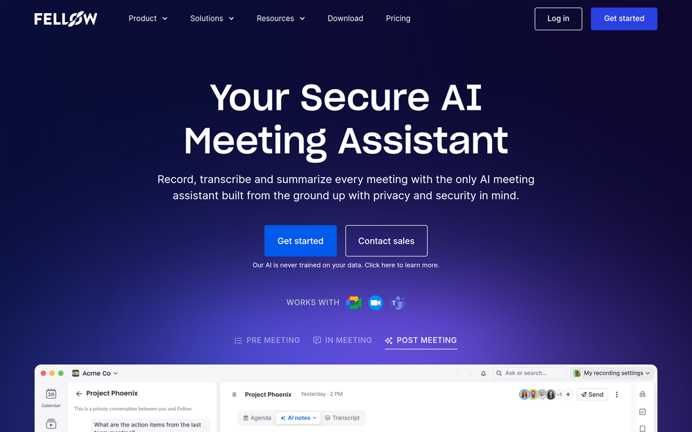 The platform addresses the common challenges of scattered meeting notes, missed action items, and inefficient follow-ups. By centralizing all meeting recordings, notes, and summaries, Fellow provides a single source of truth for teams, enhancing collaboration and productivity. Its commitment to privacy means your AI is never trained on your data, offering peace of mind for sensitive organizational discussions.