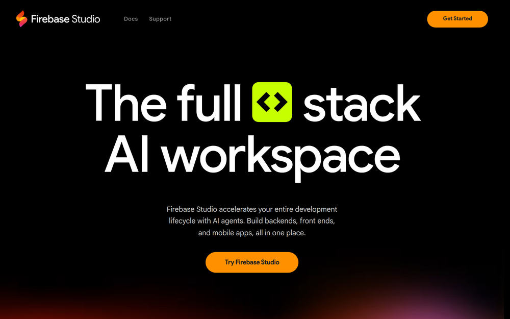 Firebase Studio: Full-stack AI workspace for accelerated development of backends, frontends, and mobile apps.