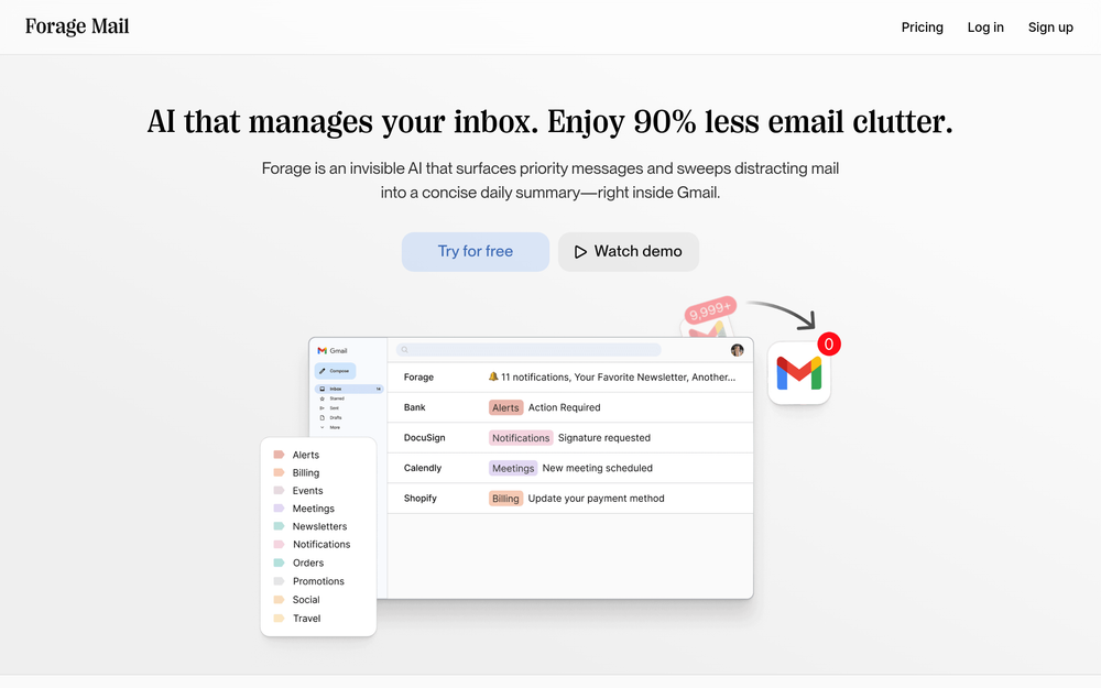 Forage Mail: AI-powered Gmail assistant to reduce email clutter by 90% and save 1-2 hours daily.