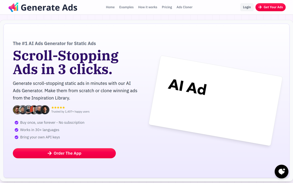 AI-powered tool to generate static ads in minutes. Create ads from scratch or clone winning ads.