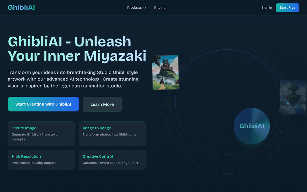 GhibliAI is a cutting-edge AI-powered platform designed to help users create breathtaking artwork in the distinctive style of Studio Ghibli. Whether you're an artist, animator, game developer, or simply a fan of Miyazaki's magical worlds, GhibliAI empowers you to bring your creative visions to life with unparalleled ease and authenticity. By leveraging advanced AI models trained specifically on Ghibli aesthetics, the tool can transform your text descriptions or existing images into enchanting visuals that capture the essence of the legendary animation studio.