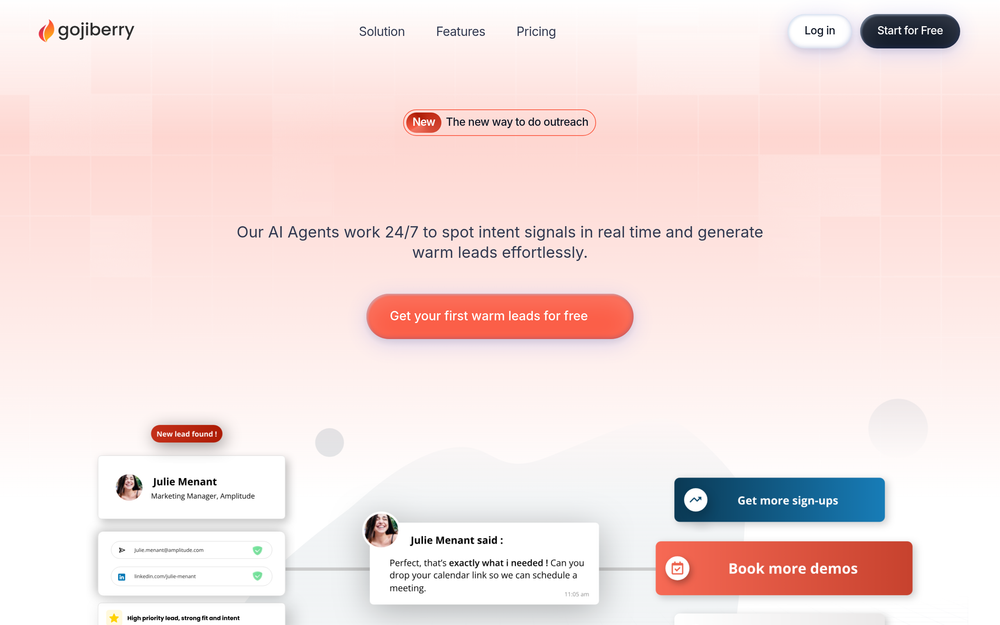 Gojiberry AI is a powerful sales intelligence platform designed to help businesses automate their outreach and identify high-intent leads on LinkedIn. By leveraging advanced AI, Gojiberry monitors over 10 different intent signals, allowing sales teams to engage with prospects at the most opportune moment. This proactive approach ensures that outreach efforts are focused on individuals who are already showing interest, significantly increasing the chances of booking sales calls and closing deals.