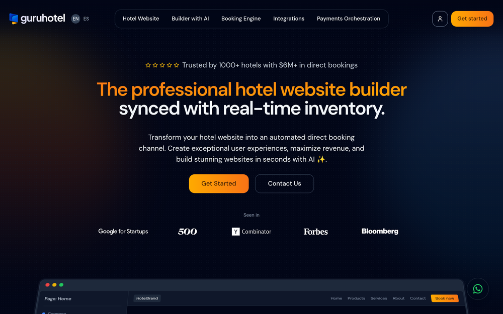 GuruHotel is an AI-powered platform designed specifically for the hospitality industry. It provides tools to build, manage, and optimize hotel websites, focusing on driving direct bookings. The platform integrates a website builder, a booking engine, payment orchestration, and AI-driven features like SEO optimization and content generation, all aimed at empowering hotels to take control of their online revenue.