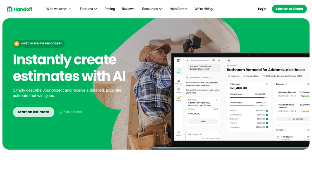 Handoff AI: Construction estimating software that automates proposals, invoicing, and project management for remodelers.