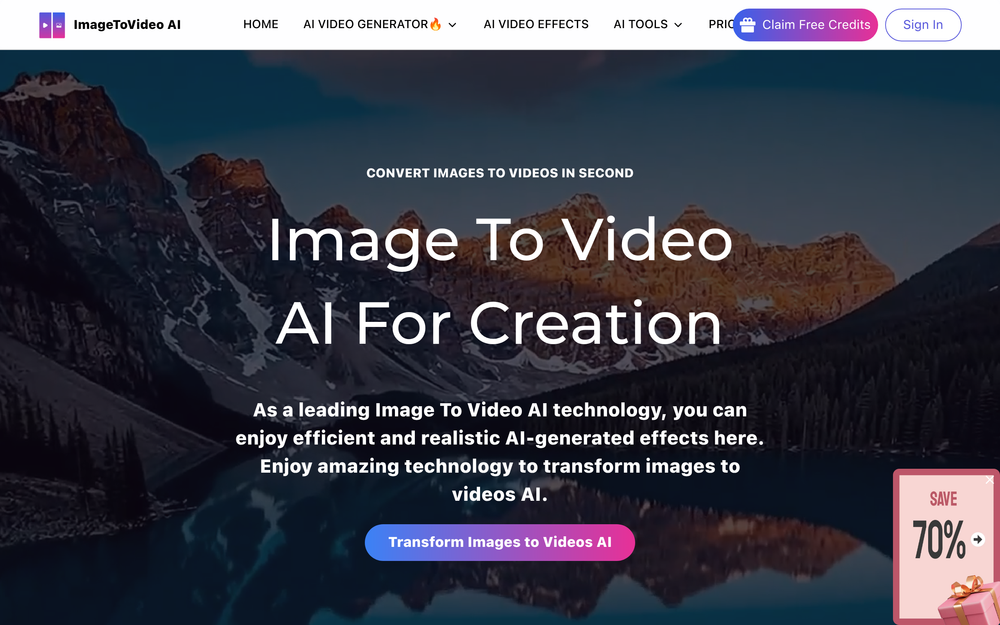 ImageToVideo AI is a powerful online platform that transforms your static images into dynamic and engaging videos using advanced artificial intelligence. This tool is designed for creators, marketers, and individuals looking to bring their visual content to life with minimal effort and cost. Whether you have a single photo or a collection of images, ImageToVideo AI offers a seamless way to generate high-quality video content in minutes.