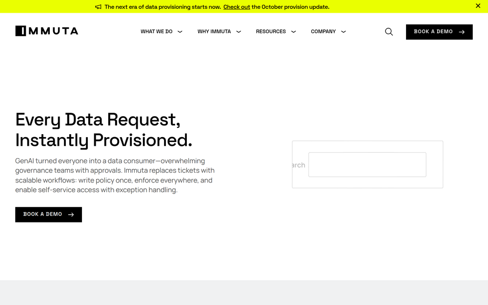 Immuta is a leading data access and governance platform designed to help organizations put their data to work, safely and efficiently. In an era where data is a critical asset, Immuta addresses the challenges of data sprawl, governance bottlenecks, and the increasing demand for self-service data access. The platform empowers data teams to automate data access policies, discover and classify sensitive information, and provide governed access to data products, all within a single, collaborative environment.
