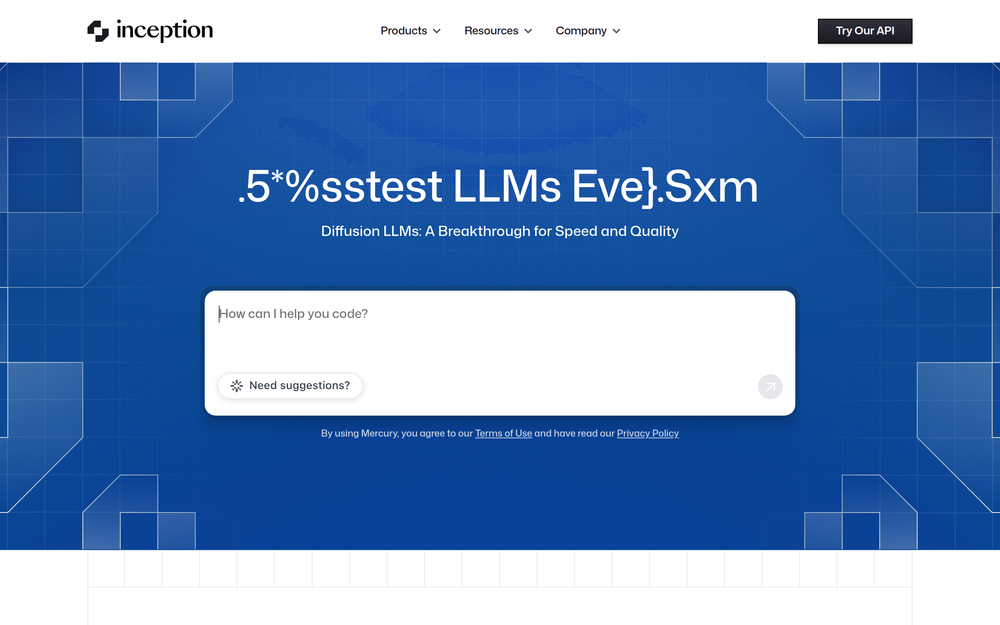 Inception Labs offers Mercury dLLMs for blazing-fast AI applications with frontier quality at a fraction of the cost.
