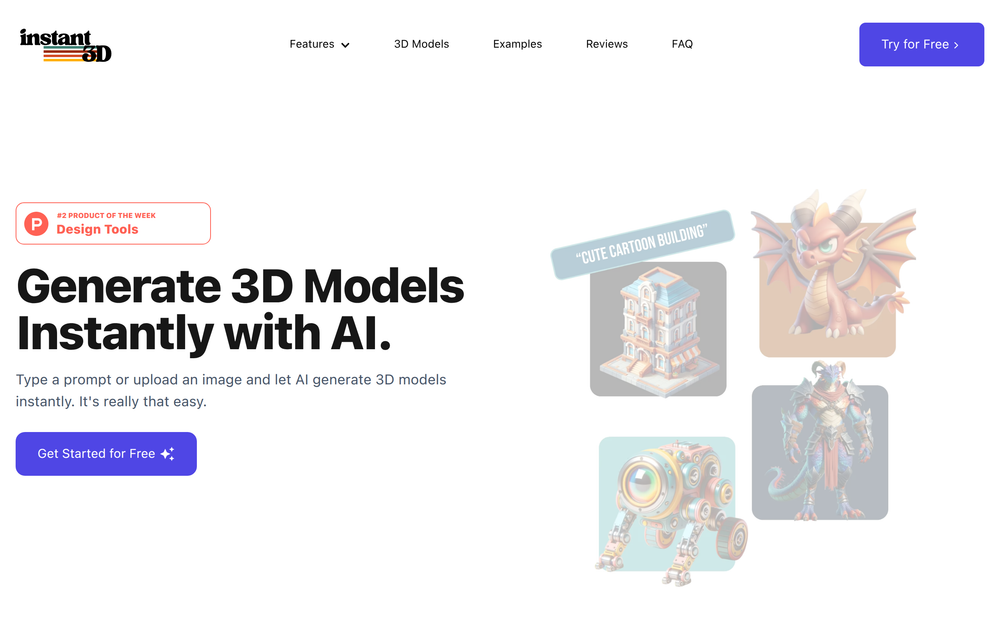 With its intuitive interface and powerful AI, Instant3D democratizes 3D content creation, offering a fast, efficient, and high-quality solution for generating stunning 3D models.