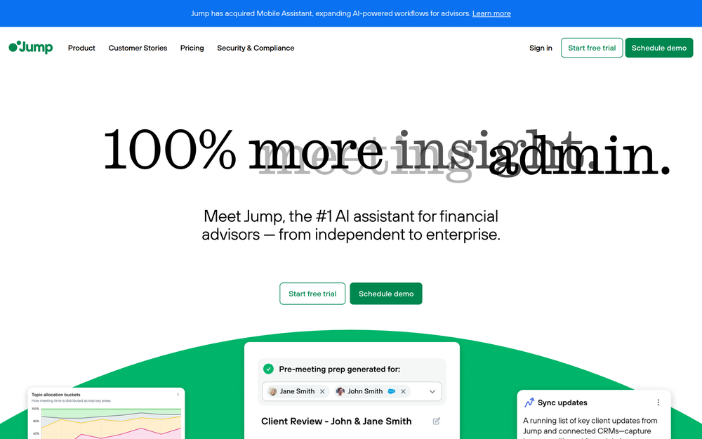 Jump AI: AI assistant for financial advisors, automating meeting admin & uncovering insights. Save time & boost productivity.