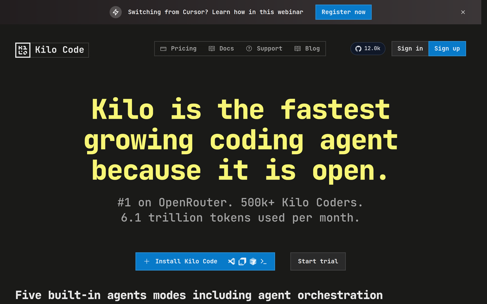 Kilo Code: The fastest growing, open AI coding agent for VS Code & JetBrains. Integrates seamlessly with your IDE.