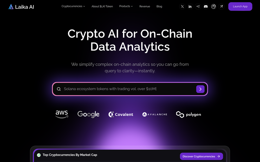 Laika AI: AI-powered platform for on-chain crypto data analytics and trading.