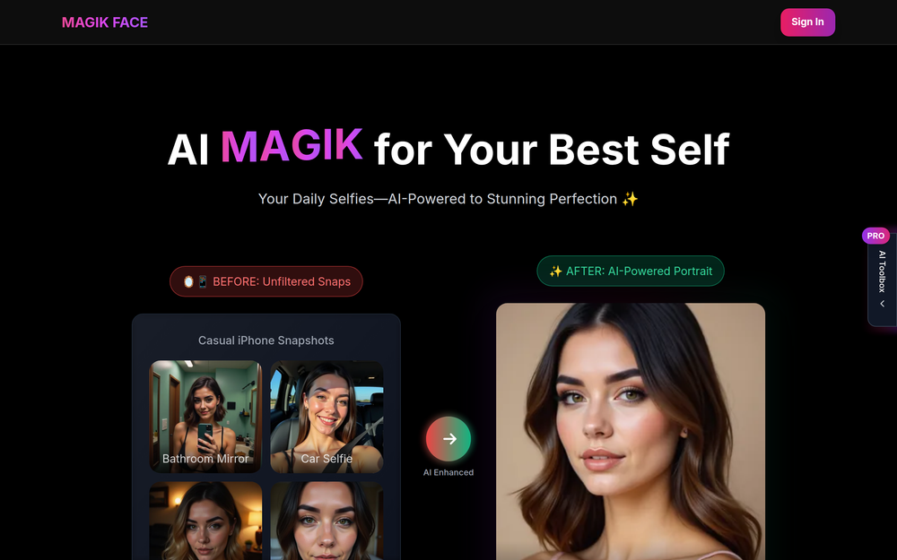 Magik Face is a cutting-edge AI-powered platform designed to transform your everyday selfies into stunning, professional-quality portraits and engaging videos. With a focus on user-friendliness and creative control, Magik Face empowers individuals to enhance their digital presence and explore various artistic styles effortlessly.
