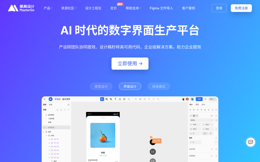 MasterGo: AI-powered platform for digital interface production, streamlining design, prototyping, and development.