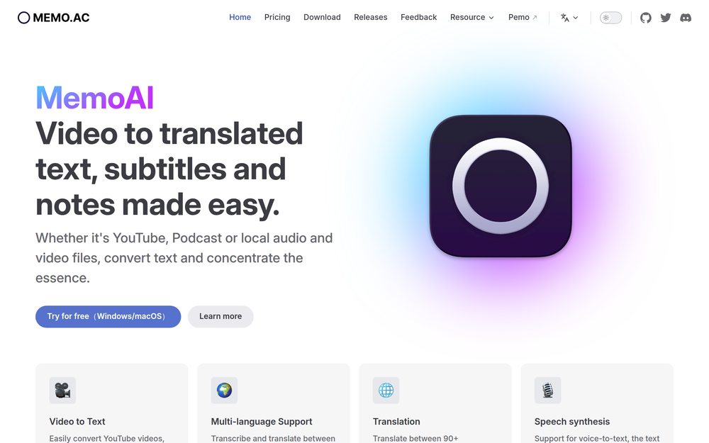 Memo AI: AI-powered transcription & translation for audio/video. Local processing for privacy. Supports 90+ languages.