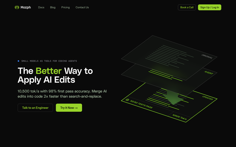 Morph is a cutting-edge AI tool designed to revolutionize how AI models interact with and modify code and files. It specializes in enabling coding agents to apply edits with unprecedented speed and accuracy, significantly outperforming traditional methods like search-and-replace. By leveraging small, specialized models, Morph ensures that AI-driven changes are merged into your codebase efficiently and reliably.