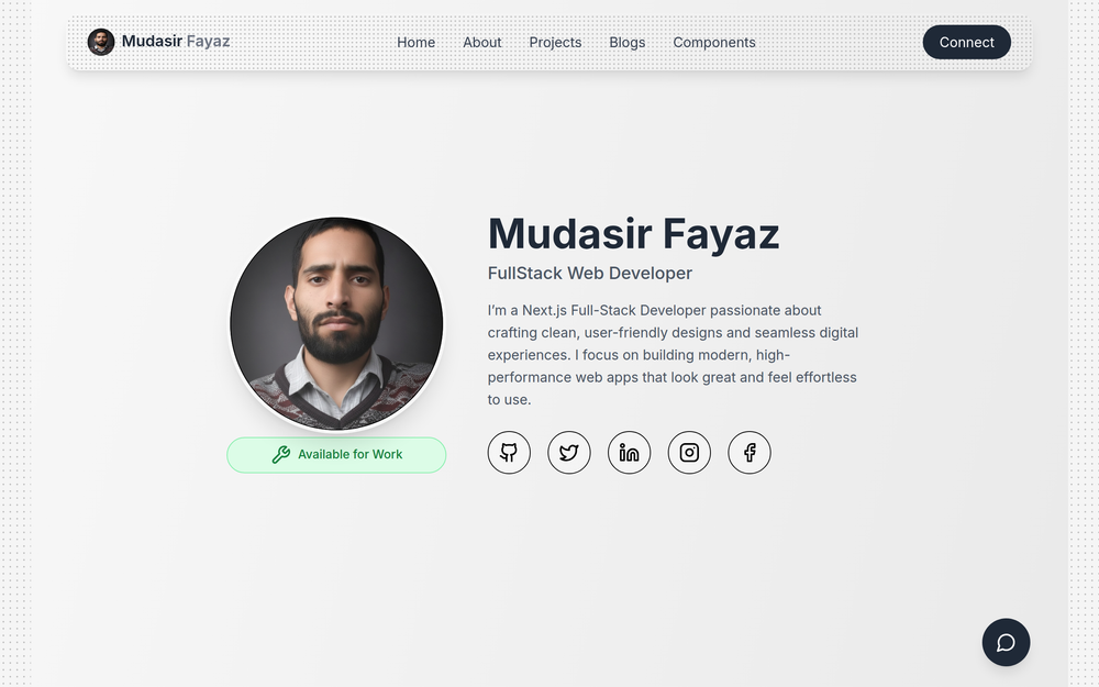 Mudasir Fayaz is a dedicated FullStack Web Developer with a strong focus on Next.js, passionate about creating clean, user-friendly designs and delivering seamless digital experiences. His expertise lies in building modern, high-performance web applications that are not only visually appealing but also effortless to use. The website serves as a comprehensive portfolio, showcasing his skills, projects, and insights into the world of web development.