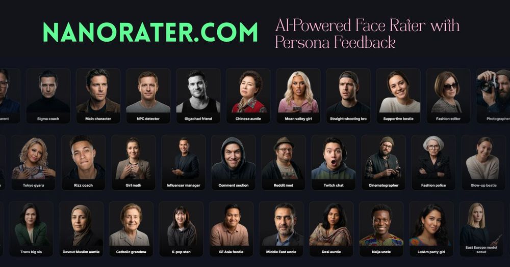 Nanorater is an AI-powered face rater that provides personalized aesthetics scores, annotated feedback, and actionable fixes using unique persona presets.