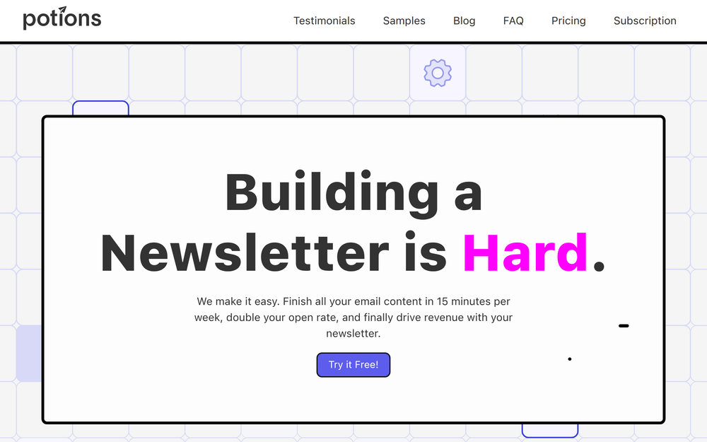 Potions: Effortlessly build and send engaging newsletters in 15 minutes weekly. Double open rates and drive revenue.