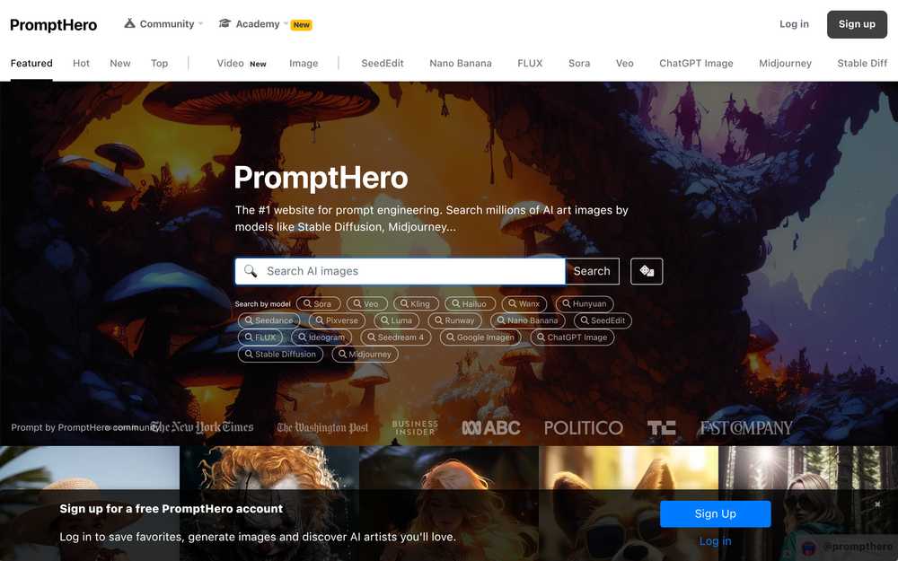 PromptHero is the leading platform for discovering and sharing AI art prompts. It serves as a comprehensive database for users looking to generate high-quality images using AI models like Stable Diffusion, Midjourney, and others. Whether you're a seasoned prompt engineer or just starting, PromptHero provides the tools and inspiration to bring your creative visions to life.