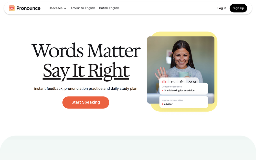 Pronounce leverages cutting-edge AI to deliver real-time speech analysis. It goes beyond basic spell-checking to provide in-depth feedback on vocal nuances, helping users refine their accent, intonation, and overall delivery. The platform simulates real-life conversations and provides actionable recommendations for improvement, making language learning engaging and effective.