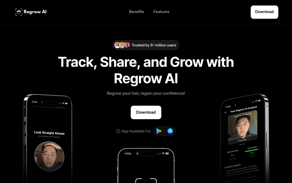 Regrow AI: Track hair loss, get personalized plans, and join a community for hair regrowth.