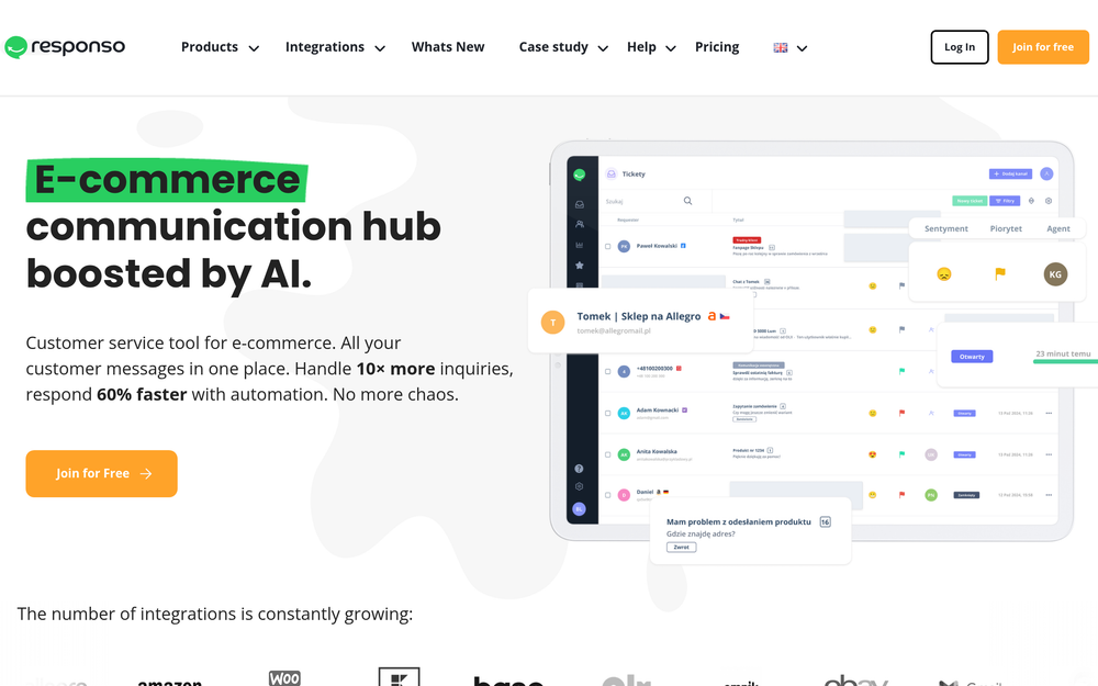 Responso acts as a unified inbox for all your e-commerce customer interactions. It integrates with numerous marketplaces, e-shop platforms, email services, and messaging apps, ensuring that no customer query goes unnoticed. The platform's core strength lies in its ability to automate repetitive tasks, provide intelligent AI-assisted responses, and offer valuable insights through detailed reports.