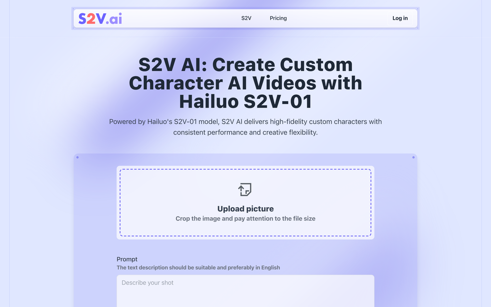 S2V AI: Generate custom character videos with Hailuo's S2V-01 model. High-fidelity, consistent characters, creative flexibility.