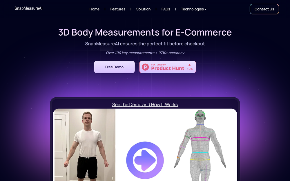 SnapMeasureAI is a cutting-edge AI-powered solution designed to revolutionize the e-commerce fashion industry by providing precise 3D body measurements from simple user-submitted photos. It aims to solve the pervasive problem of ill-fitting clothing and high return rates in online shopping.