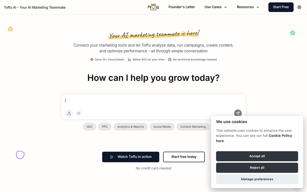 Toffu AI: Your AI marketing teammate for automated campaigns, content creation, and data analysis.