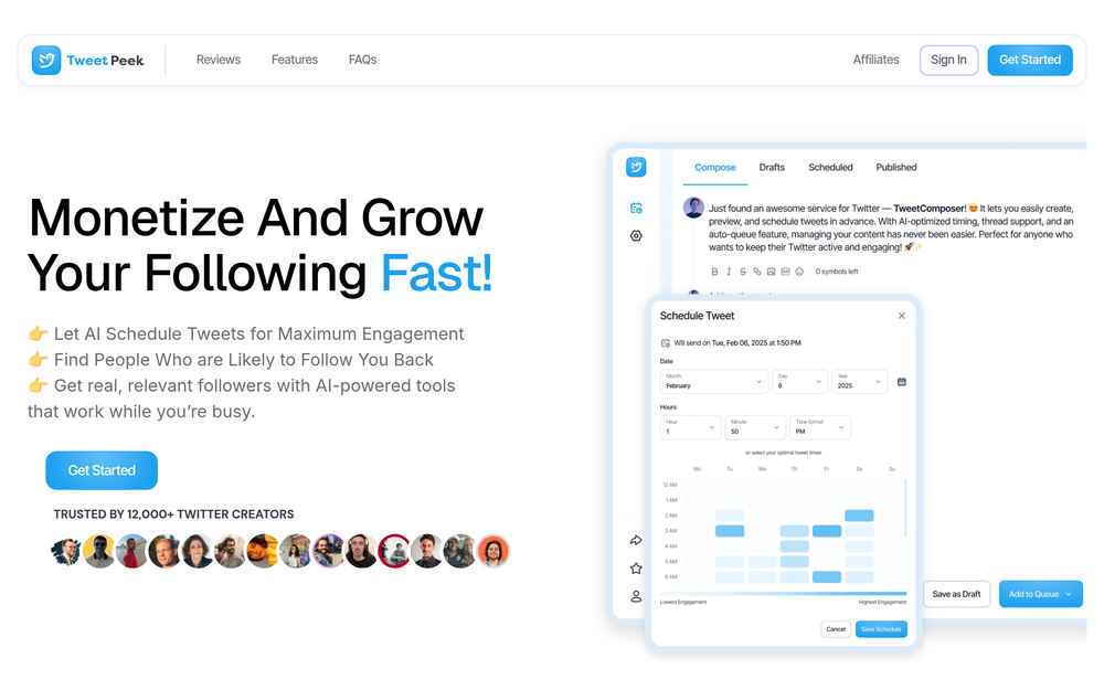 TweetPeekAI: AI-powered tool to grow your Twitter following, schedule tweets, and increase engagement.