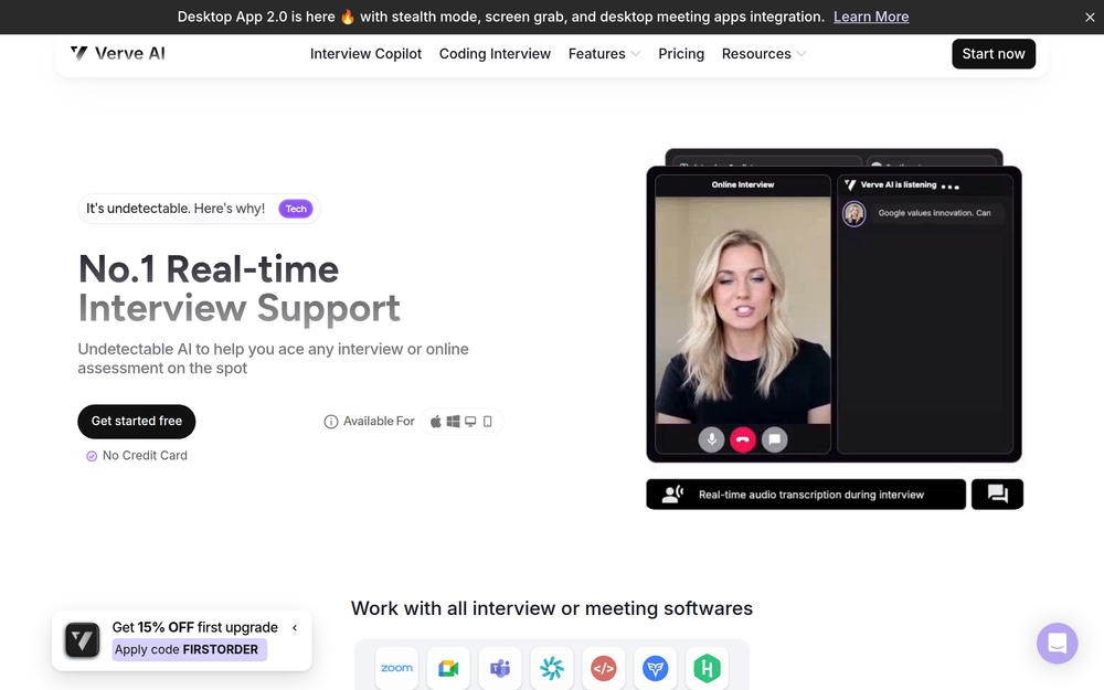 Provides support for a wide range of interview formats, including behavioral questions, technical assessments, live coding challenges, and video interviews.