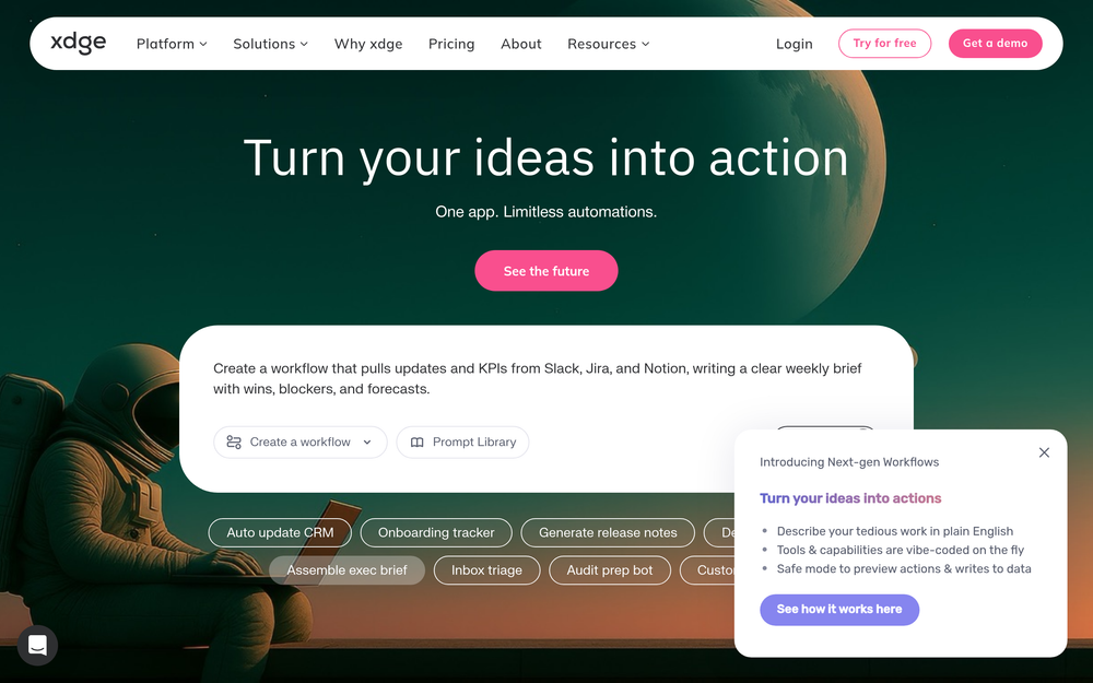 xdge: AI agents for automating research, meetings, and workflows across your work apps.