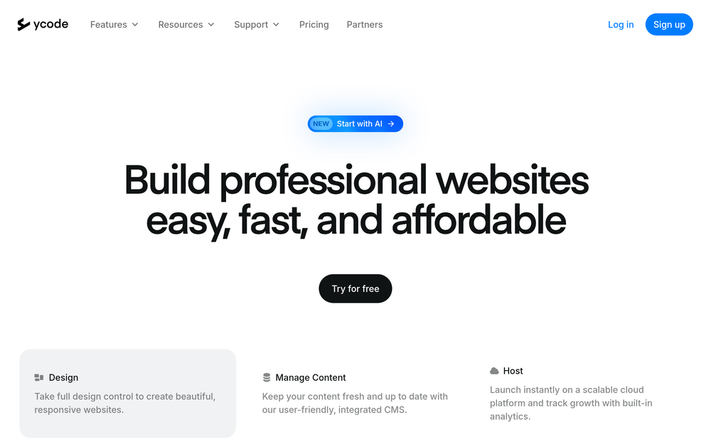 Ycode: Build professional, responsive websites with a powerful no-code visual editor and integrated CMS.