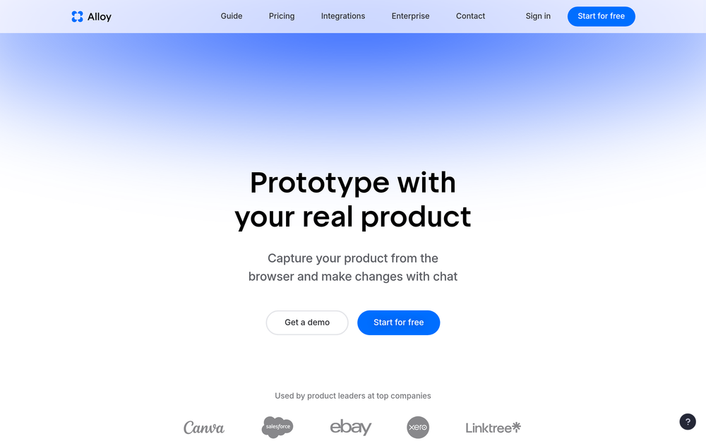 Alloy 是一款革命性的 AI 驱动原型设计工具,旨在改变产品团队构思、迭代和沟通的方式。它允许您直接从浏览器捕捉在线 Web 产品,然后通过自然语言聊天进行修改并生成新创意,这些创意能与您现有的设计无缝融合。这种创新方法极大地减少了创建高保真、符合品牌风格的原型所需的时间和精力。