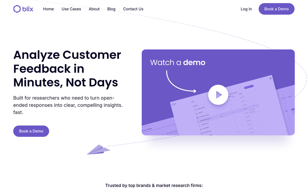 Blix 是 市场研究人员、消费者洞察团队 和 CX(客户体验)专业人士 的理想选择,他们需要处理大量的定性反馈并高效提取有意义的洞察。对于任何旨在通过客户原声更好地了解客户的企业来说,它也大有裨益。