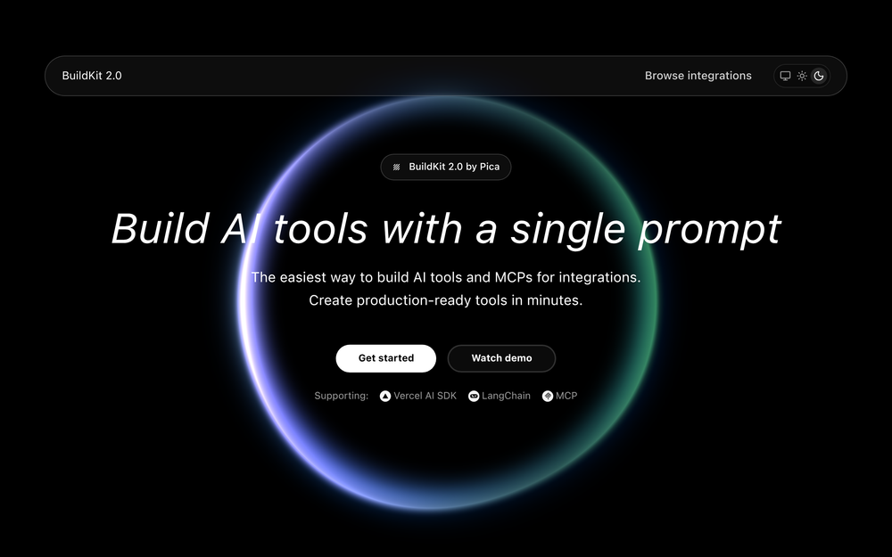 BuildKit 提供了直观的入门体验,其特色教程将引导您在 5 分钟内构建一个功能齐全的 AI 工具。该教程涵盖了关键步骤,如安装 Pica MCP Server、连接必要的账户(如 Gmail)、设置启动项目、定义 LLM 规则,最后提示 AI 构建您的工具。这种亲身实践的方法让用户能够快速掌握平台的潜力并看到切实的成果。