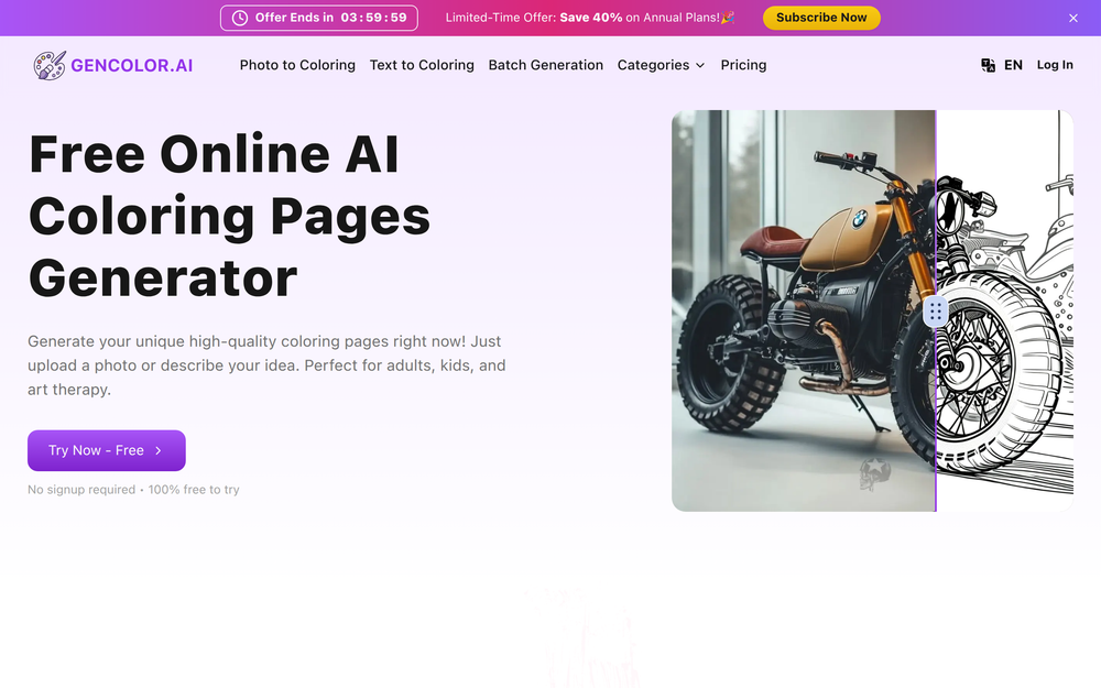 无论您是在为孩子寻找创意活动、为成人寻找放松方式,还是在寻找独特的艺术治疗工具,GenColor AI 都能让这一切变得简单且触手可及。