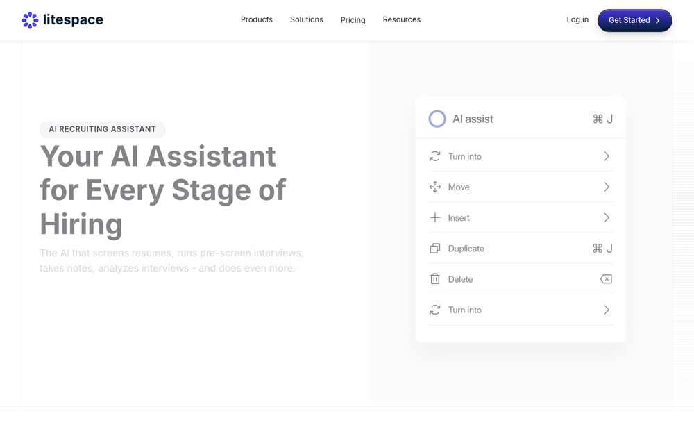 Litespace 是一个全面的招聘 AI 解决方案。它充当智能助手,与人类招聘人员协作,处理招聘中重复且数据密集的工作。从寻找潜在候选人到进行初步面试和总结关键信息,Litespace 简化了工作流程并提供可操作的见解,从而实现更快、更明智的招聘决策。