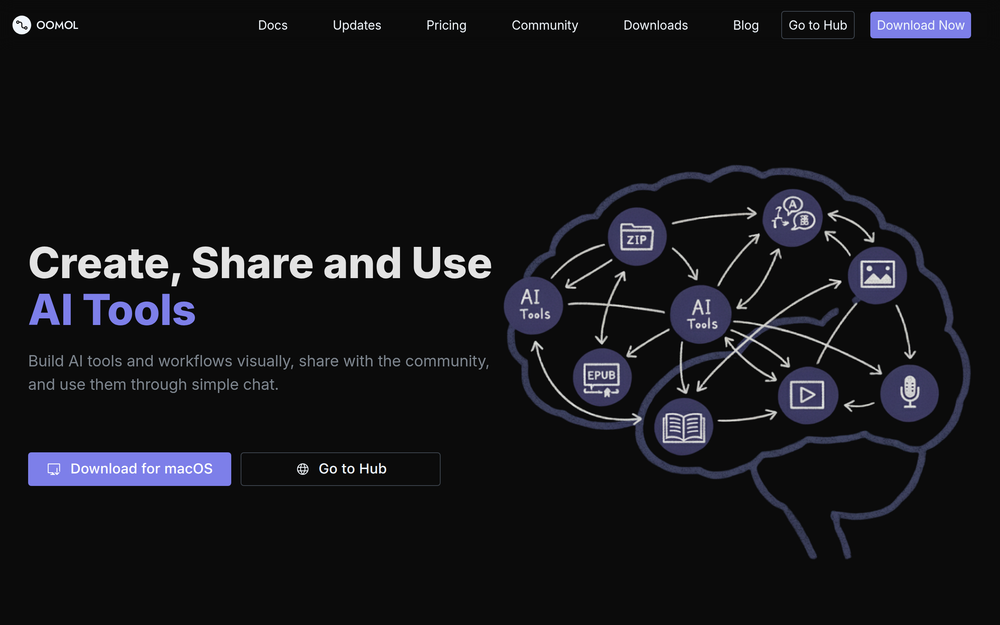 OOMOL 为构建自定义 AI 应用提供了一个强大且直观的环境。无论您是需要处理媒体、通过文本提示编辑图像、管理归档文件、转换文件格式还是分析数据,OOMOL 都提供了预构建的工具包,并具备创建独特解决方案的灵活性。其 AI Vibe Coding 功能允许根据简单的描述自动生成工作流,而拖拽式可视化编辑器则为手动创建提供了精细的控制。